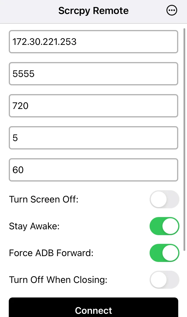 172.30.221.253。因此在手機上的Scrcpy客戶端輸入