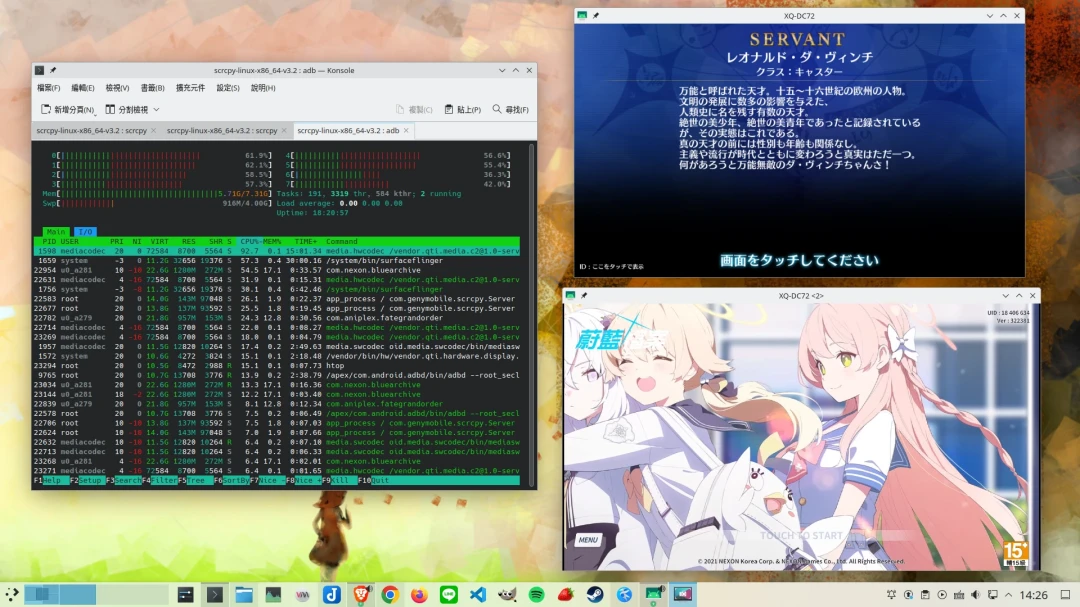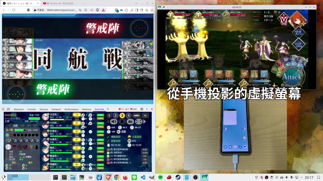 範例:在電腦上同時玩網頁遊戲艦隊Collection與手機上的FGO。執行FGO的時候,手機螢幕可以關閉。