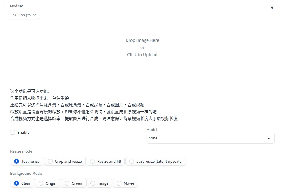 本擴充功能可將影片逐一抽出畫格,使用ControlNet生圖,然後再自動合成新影片。可以設定輸出的畫格率,將人物單獨處理。