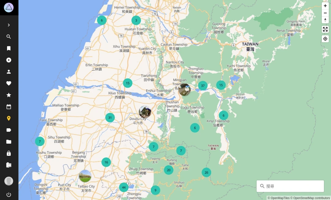 有標示地點的相片,PhotoPrism會將其彙整並繪製成地圖。