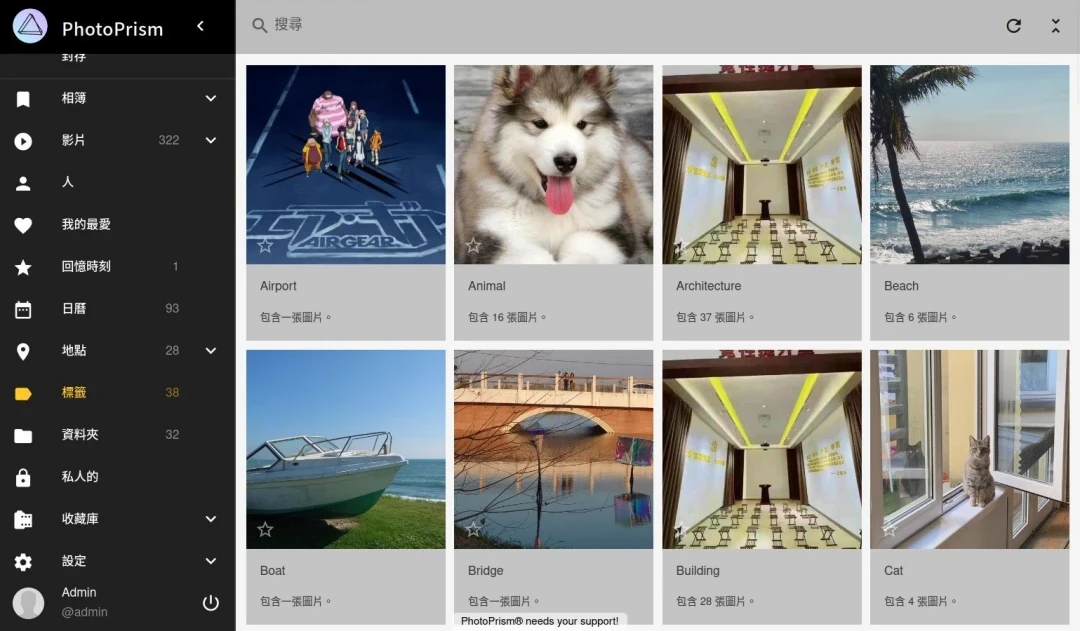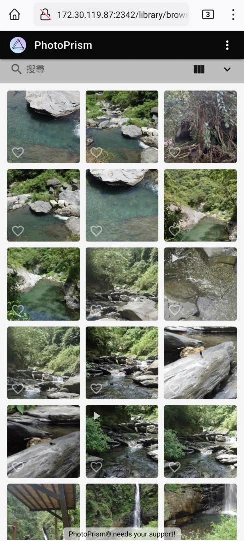 不過手機還是有APP用起來比較爽吧,這裡有第三方開發的PhotoPrism Gallery,界面清爽許多,支援搜尋相簿和標籤。