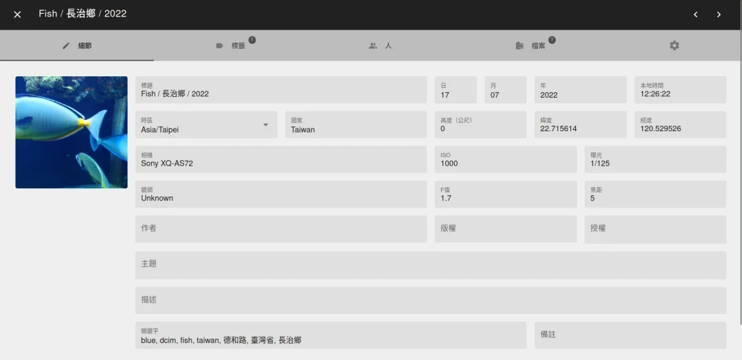 點選相片查看/編輯詳細資料,自訂關鍵字。