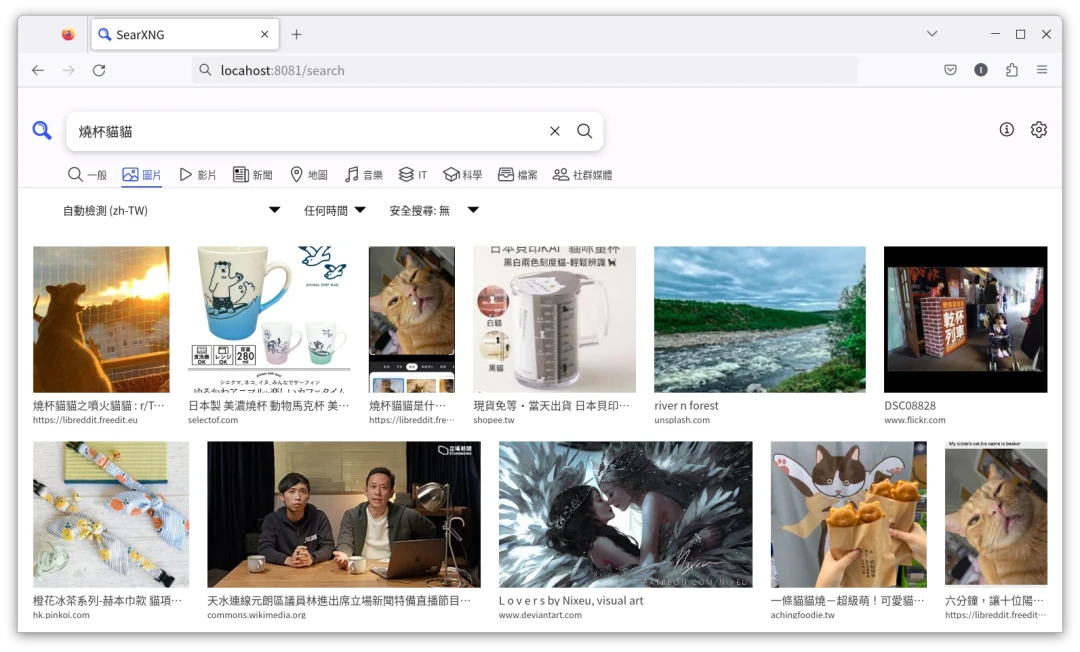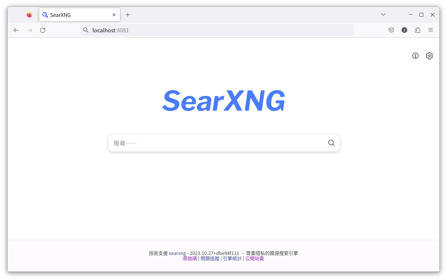 http://localhost:8081,測試能否存取SearXNG首頁。
