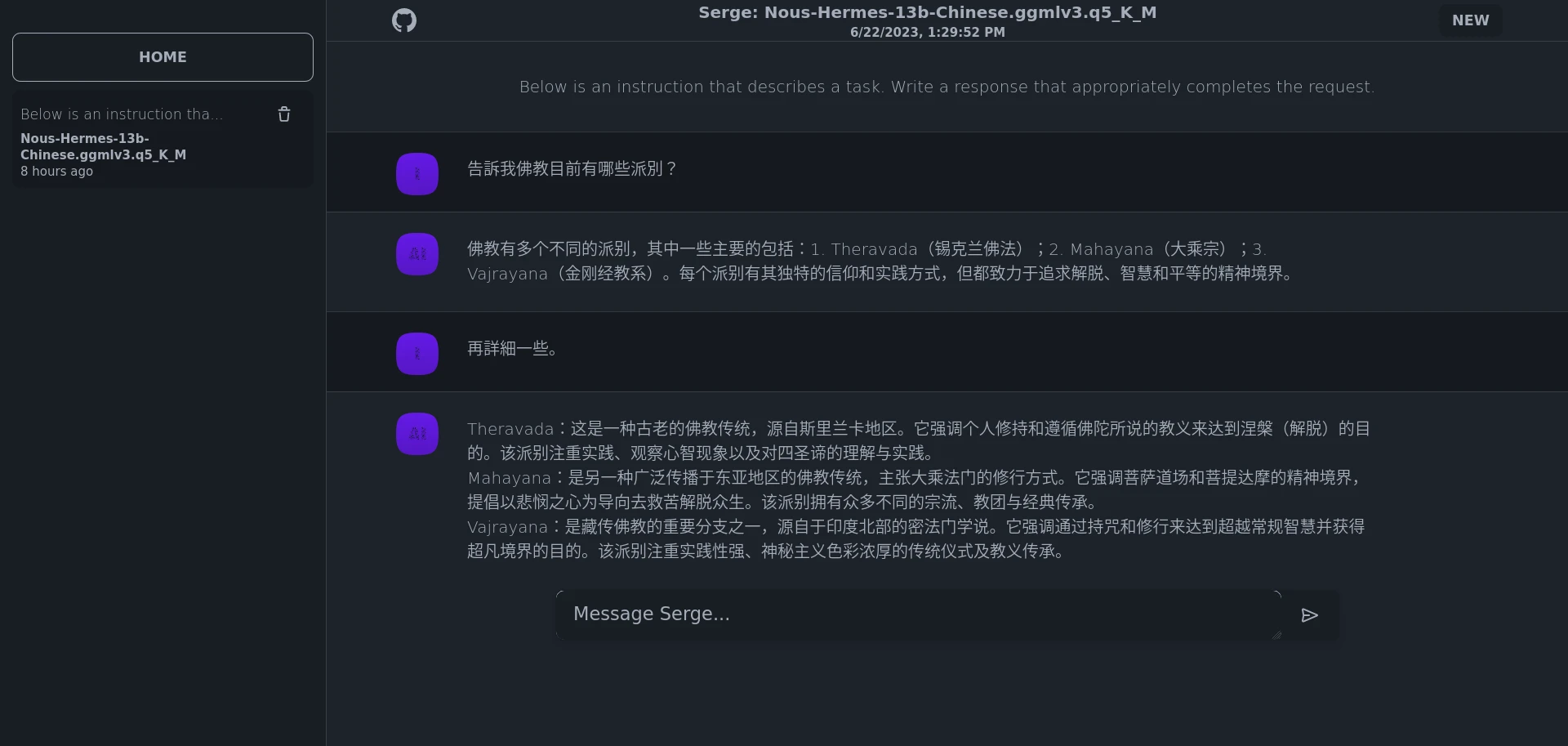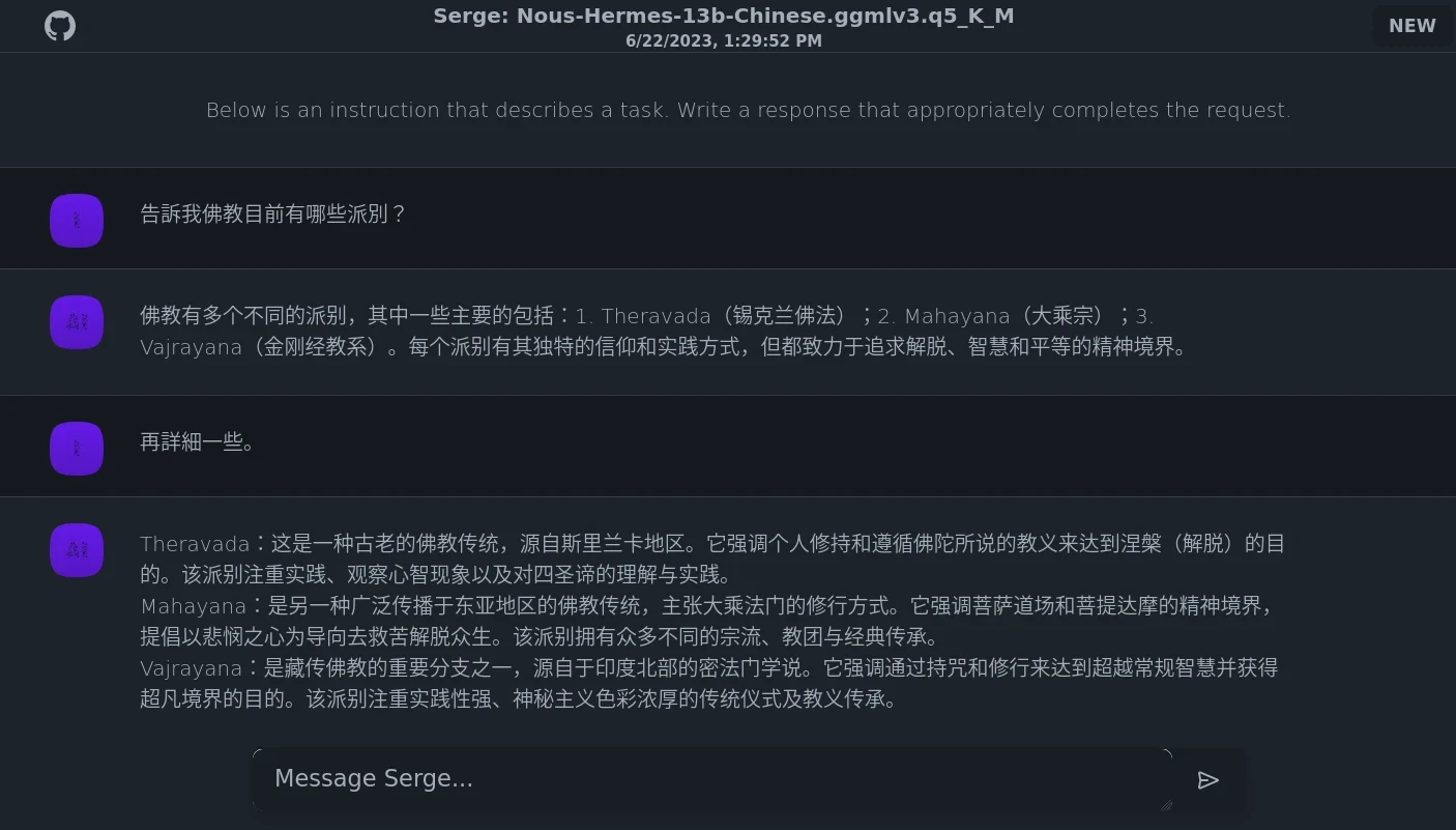 Serge可讓使用者與LLaMA系列的AI聊天互動,就像在自己的電腦離線跑ChatGPT一樣,支援中文對話。