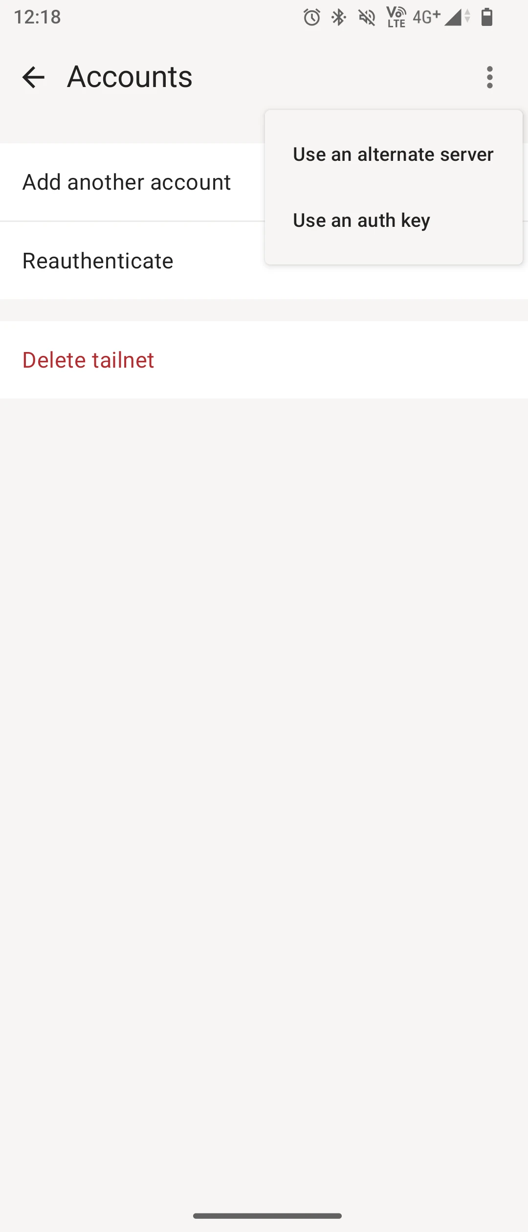 Android手機點右上角 Accounts → use an alternative server,填入Headscale伺服器網域