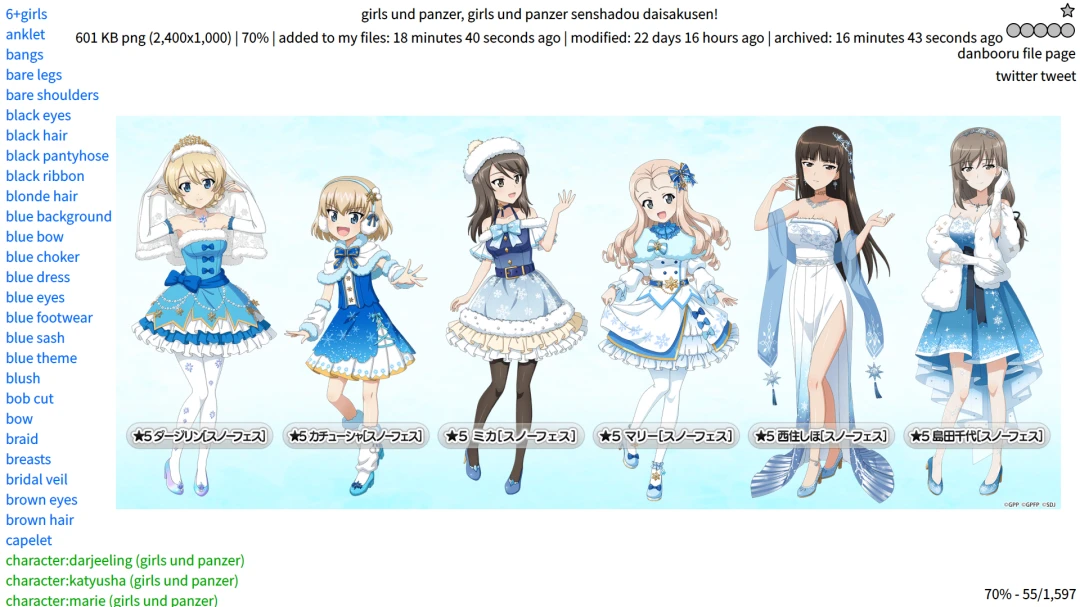 比如針對動漫圖片:蒐集一個角色的圖片,我應該都會加上character:人物(如果是真實人物則用person:人物),還有series:作品名稱和creator:作者的標籤,還有這張圖片哪裡覺得印象深刻的部份,但不需要把角色膚色和眼睛都標上去。最後是選擇性標記,看圖片是否能有特殊用途或符合性癖好,例如抱枕圖就額外標記dakimakura_(medium)。