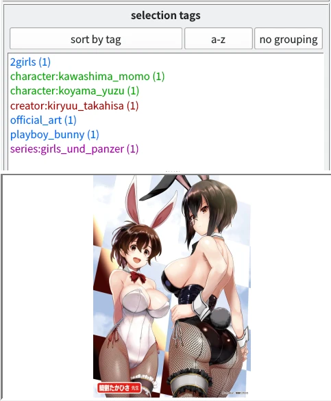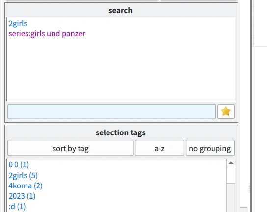對習慣使用歐美動漫貼圖站的用戶來說(例如Danbooru、Gelbooru、yande.re),用標籤給種類混雜的圖片分類是最好的方式了。