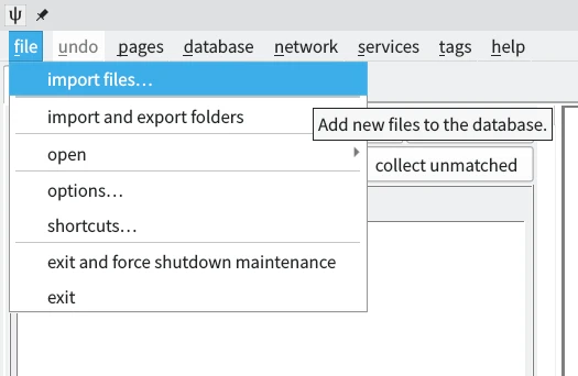 首先讓我們理解一下Hydrus的管理概念。Hydrus不能直接讀取硬碟的資料夾,所有檔案都必須匯入到Hydrus的資料庫才能開始整理。