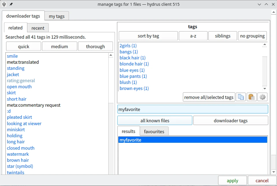 Hydrus非常依賴標籤管理,所以這裡沒有資料夾的概念,要搜尋全部都是依賴標籤或者檔案屬性來找。
