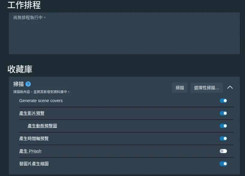 接著到設定 → 排程 ,將產生縮圖的選項打勾,點選開始掃描。