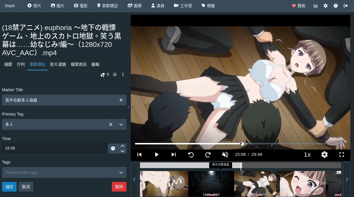 Stash也是可以當一般影音伺服器用啦,Stash就好比色情版的Jellyfin啦,只不過功能比較少。不論是影片還是圖片,都可以透過Stash,用標籤分類、標記時間軸、調整串流畫質的功能,並用網頁觀看影片。