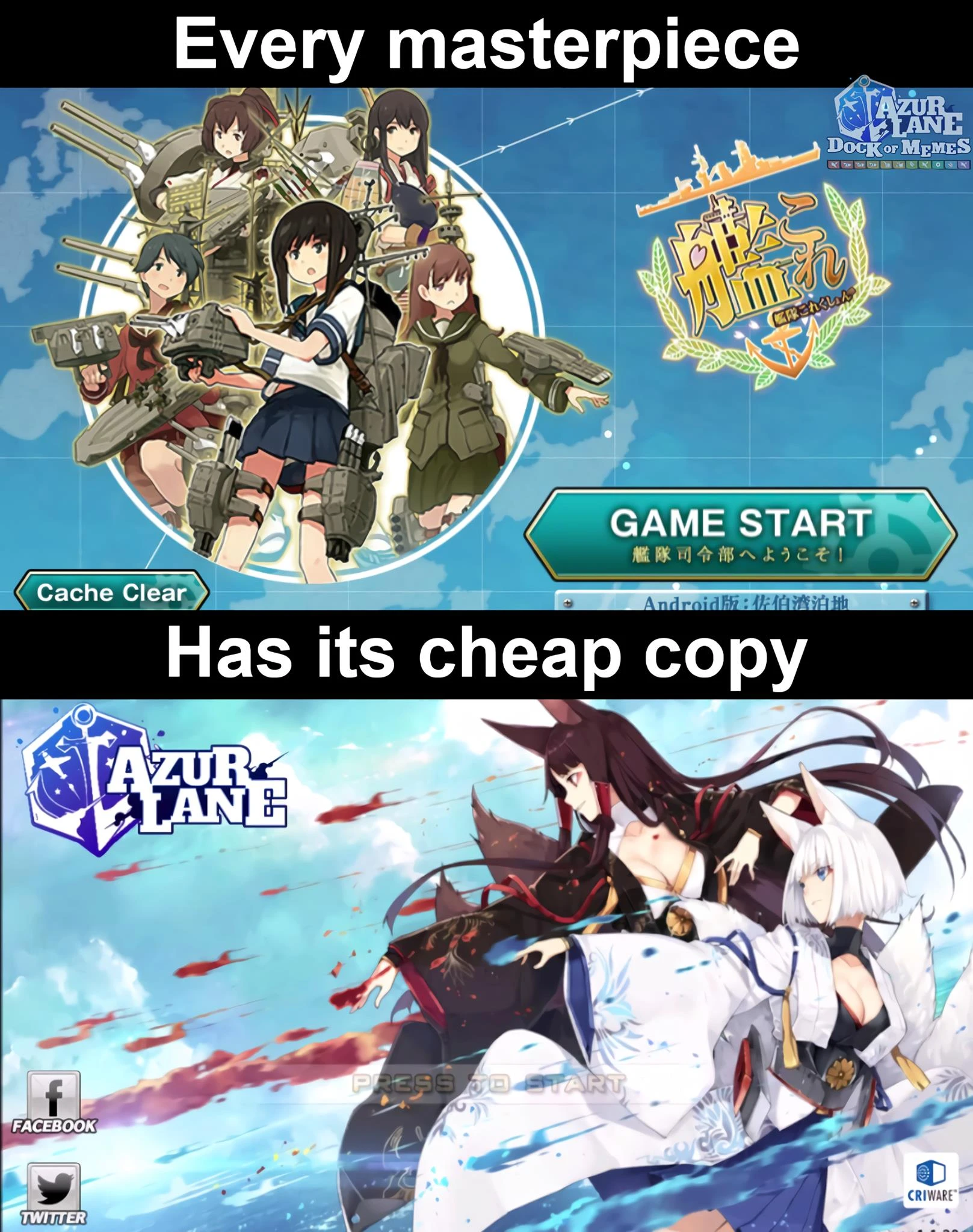 相比之下,艦隊Colletion的電子妓女力是內隱(implicit)的,很依賴同人創作。沒人想在遊戲裡面看到艦娘爆衣 —— 那通常是大破了,代表作戰失敗了,要回港推倒重來了,否則會沈船並永久失去角色。跳脫遊戲本體的話,二創社群社群依照官方設定的基本屬性(立繪與語音)下去創作的作品就有更多想像空間,官方的暗示不會將玩家的印象框住,在遊戲裡面,艦娘是穿著正正當當的上班,然後由二創故事補完下班之後,玩家與艦娘的刺激夜戰橋段。在兩者結合之下,電子妓女的屬性不會嫁接到官方上面,而是由第三方共同承擔分享這份罪孽~