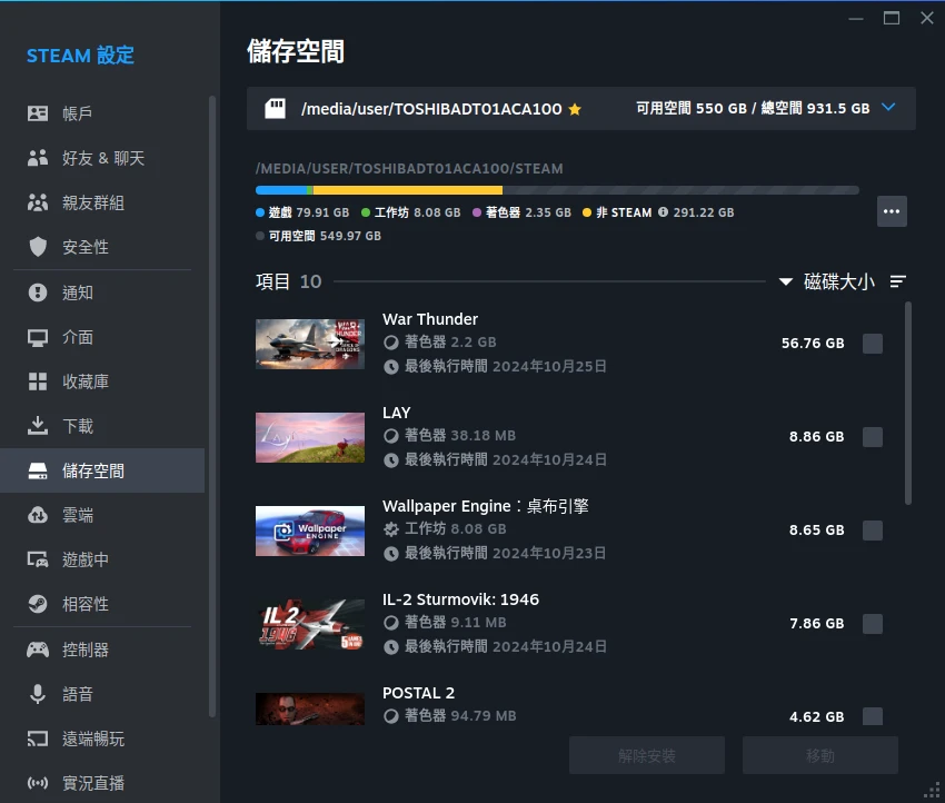 用來裝Steam遊戲的硬碟,格式化為NTFS或BTRFS都可以。雖然有人認為BTRFS會降低HDD效能,但我用起來覺得沒差。