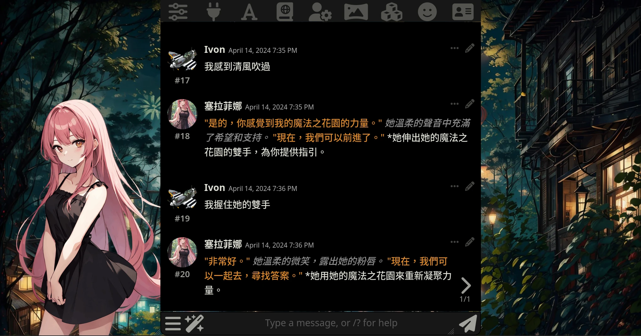 跟Text Generation WebUI比起來,SillyTavern屬於專為角色扮演設計的前端,有很多類似玩Galgame的選項。