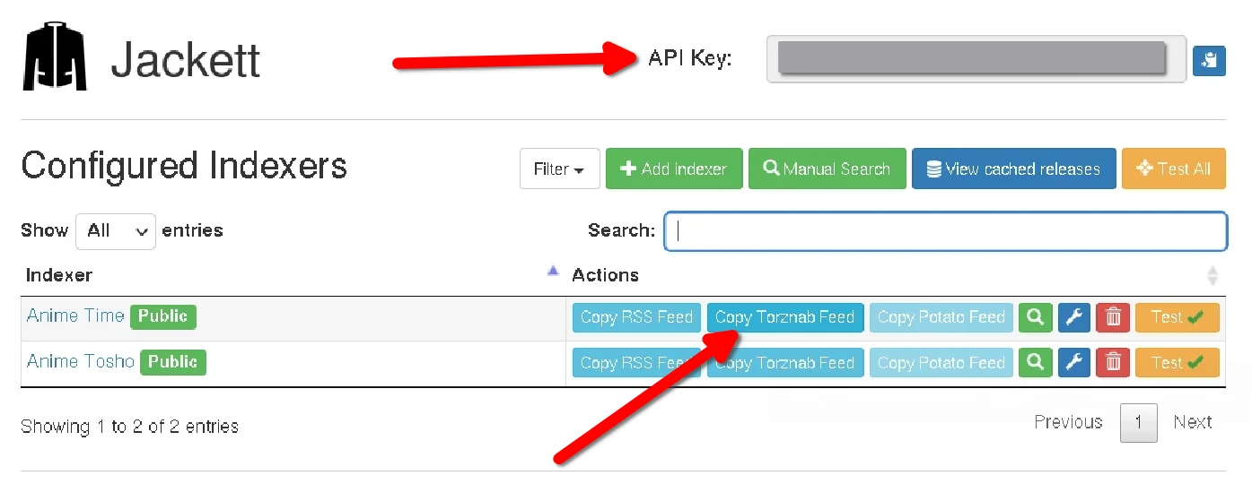 Copy Torznab Feed複製網址,還有右上角的API Key。