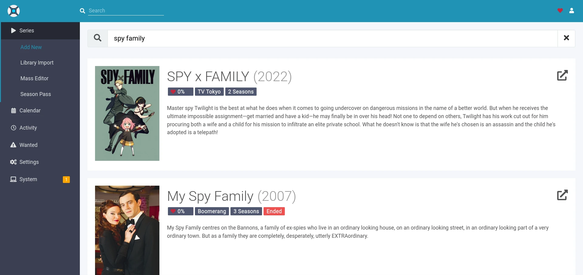 回到Sonarr首頁,直接搜尋動漫。透過TVDB可以找到更精確的電視劇名稱,英文為佳