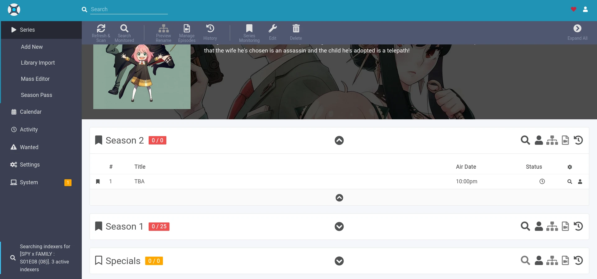 Sonarr可視作下載BT影片的「控制中心」,集中追蹤BT種子,自動按照畫質、語言、特定集數的搜尋條件去找種子,並在下載後自動將影片分類到各個資料夾。