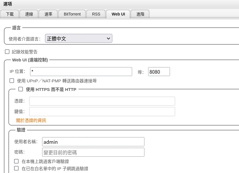 註:qBittorrent Docker版可能會遇到unauthorized錯誤,解決方法見此