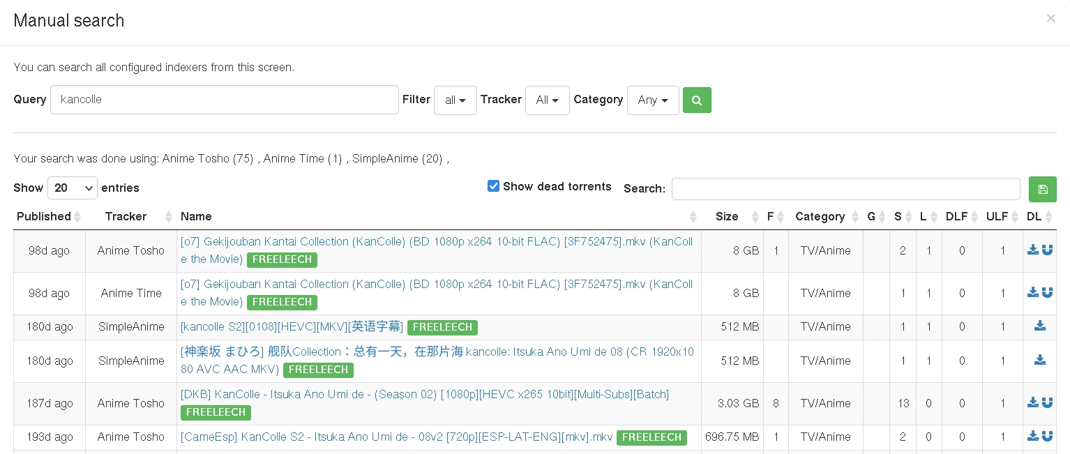 之後Sonarr就會開始搜尋種子。按照我上面的Profile語言設定,搜尋到影片的應該是日語版為主,有的則是內嵌多國字幕的版本。