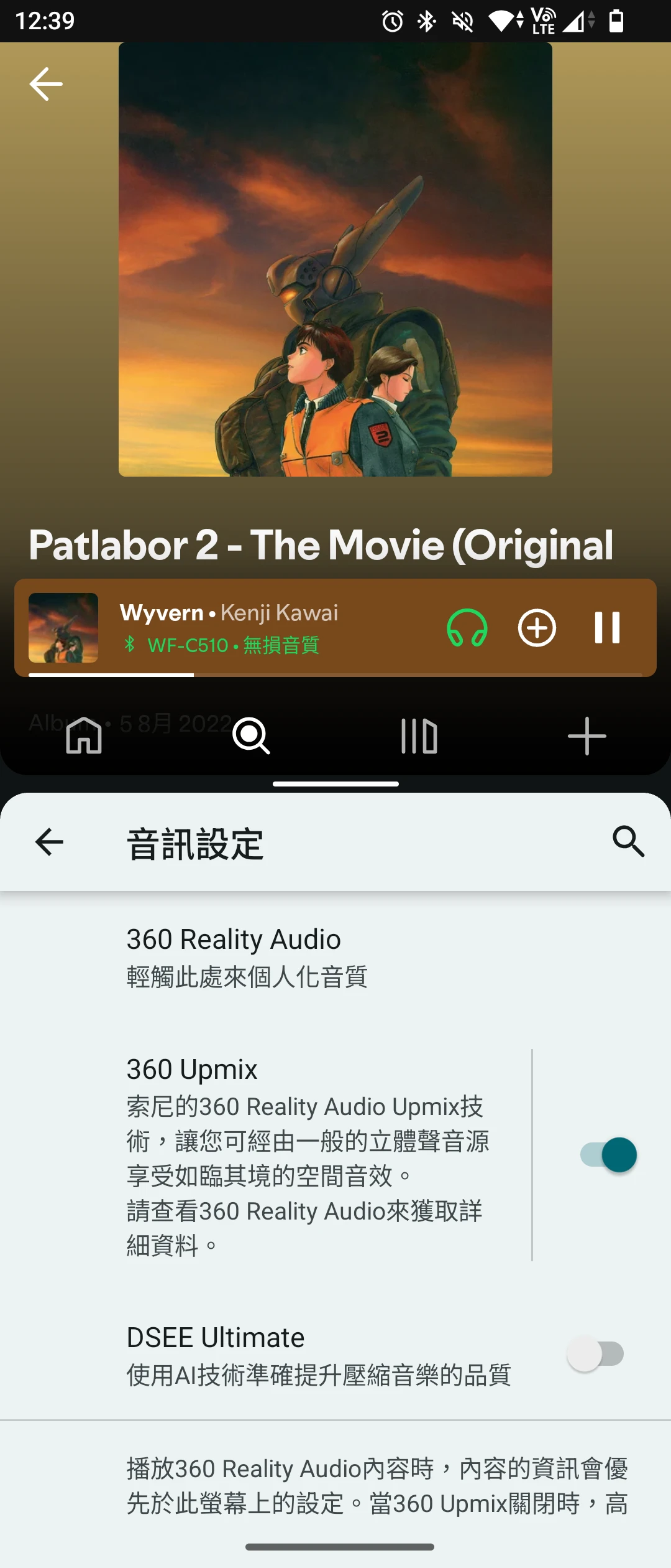 此外,如果你硬要的話,可以透過「360 Upmix」軟體模擬將一般音樂轉成360 Reality Audio。可,360 Upmix這個功能僅限Sony Xperia才能用!!!根本在強迫推銷Sony手機。
