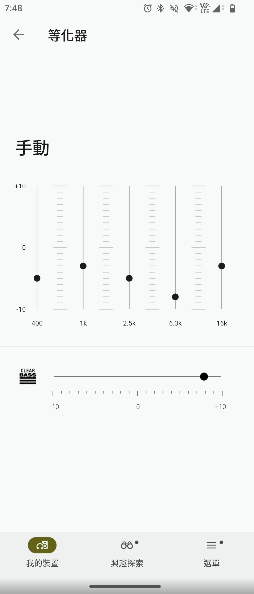 建議用Sound Connect調整等化器(EQ)可以獲得更好效果。這個等化器效果應該是儲存在耳機裡面的,換裝置播放也有效,不需要一直開APP調整。