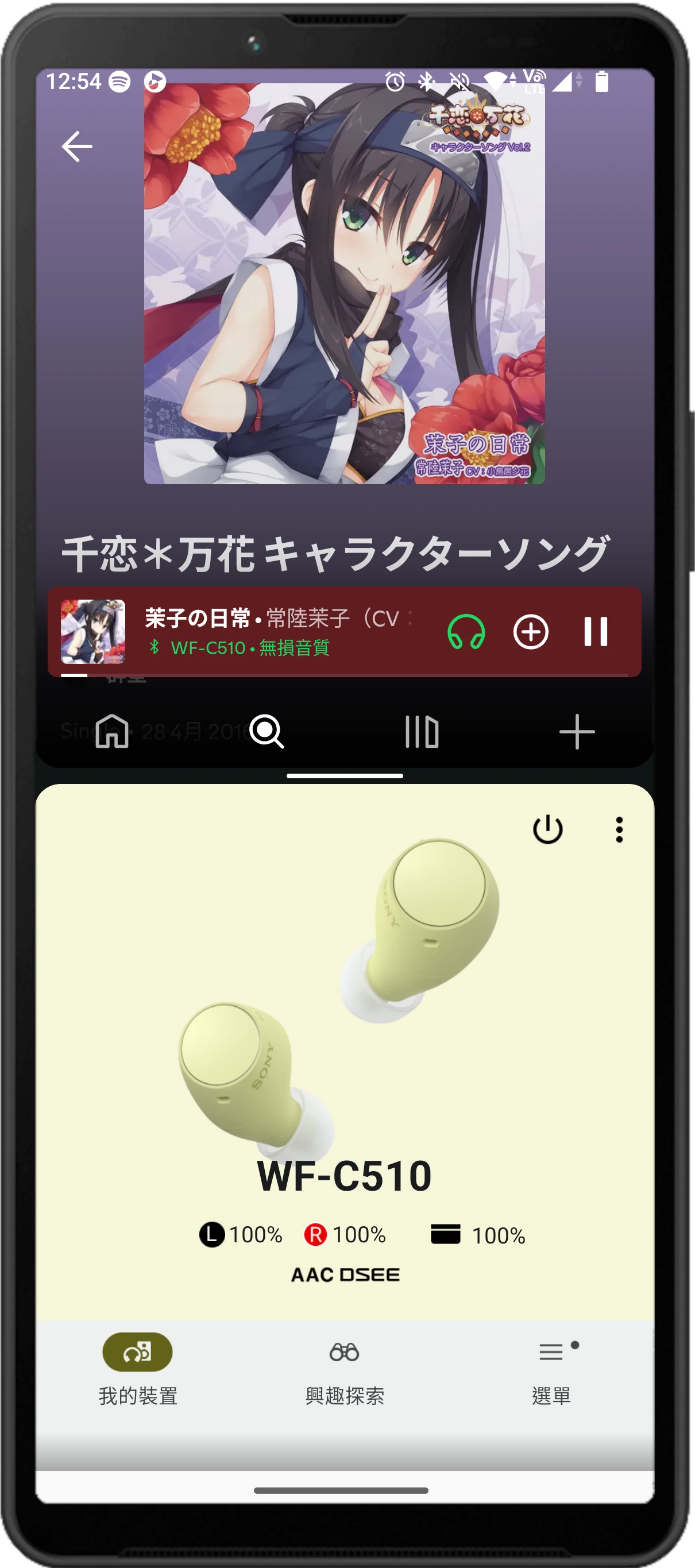 我不確定DSEE的工作原理為何,DSEE應該是在耳機端處理,並非手機端。如果說,Android手機的Spotify無損音訊透過藍牙傳輸,壓縮一次,到耳機上就變成壓縮音訊(因為WF-C510只有AAC,沒有LDAC),那麼DSEE在耳機上運算,便是將被壓縮過的藍牙音訊升頻回去?這樣的話DSEE便是用來救援被壓縮過的藍牙音訊的用途。