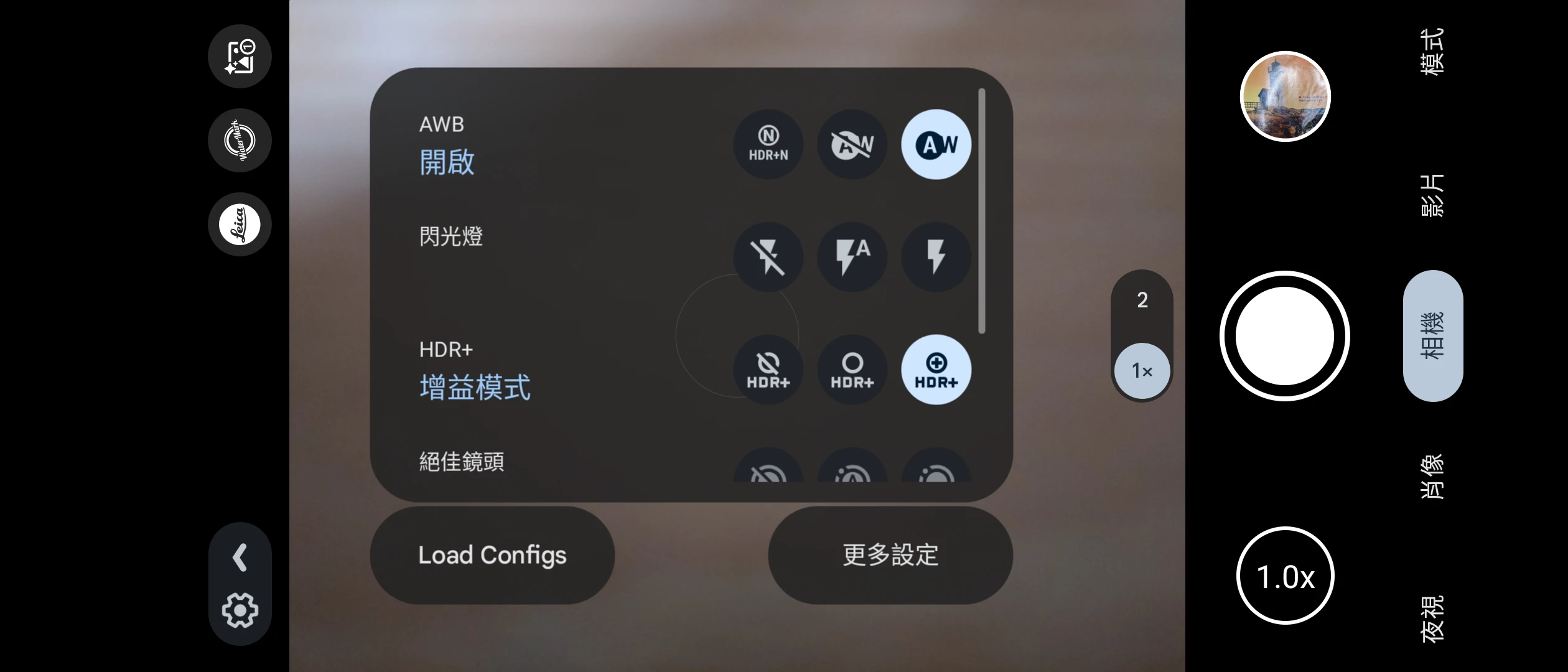 我使用的是BigKaKa的AGC 9.2,也可以嘗試其他人製作的最新版本,不用設定檔就能用,三個鏡頭都正常。裡面的手動模式可以解決原廠相機白平衡亂飄的問題。