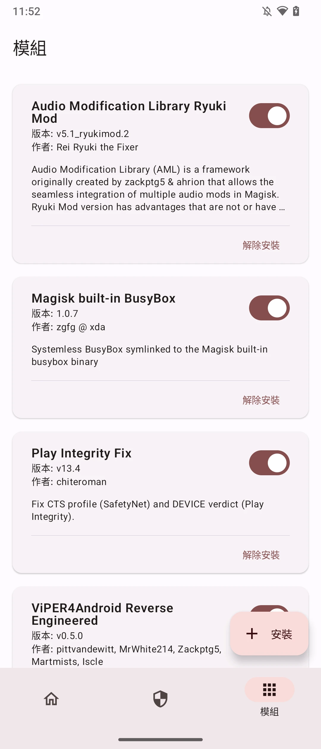 經過測試Viper4Android(搭配Audio Modification Library)正常、Busybox正常、PlayIntegrityFix正常。