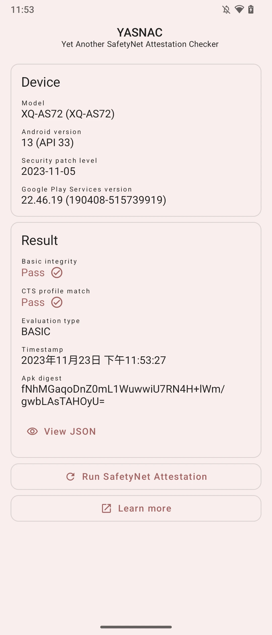 搭配PlayIntegrityFix,YASNAC顯示SafetyNet可以通過。