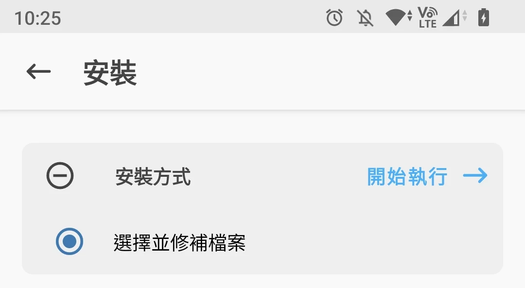 將boot.img傳送到手機,開啟Magisk Manager,點選安裝 → 修補檔案,選取剛剛抽取的boot.img