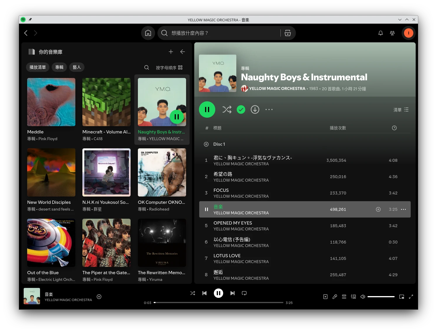 接下來使用方法…不用教了吧,Spotify的基本功能Spot都有,包含檢視自己的專輯收藏、搜尋音樂、加入播放清單等等。