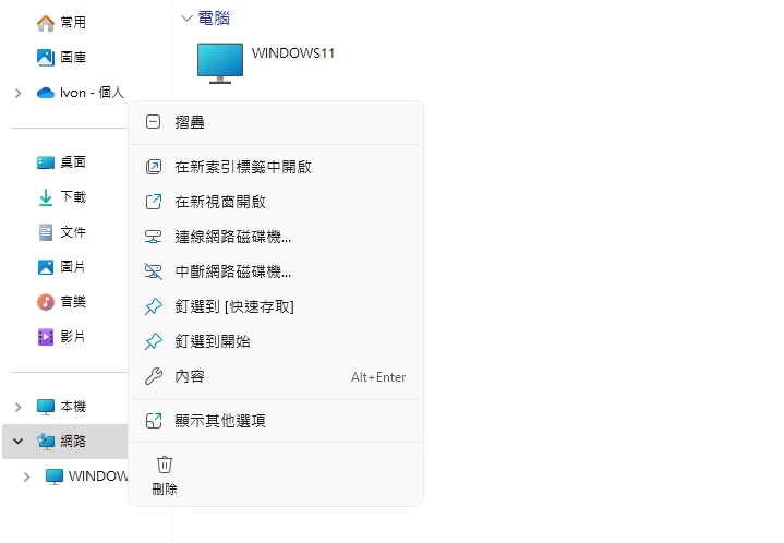 然後對檔案總管的「網路」,按右鍵,連線到網路磁碟機