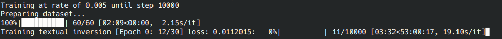 那如果異想天開用CPU來訓練Textual Inversion個人模型呢?就算核心和RAM全跑滿,光10000步就需要48小時,你可以看到這是天殺的時長。