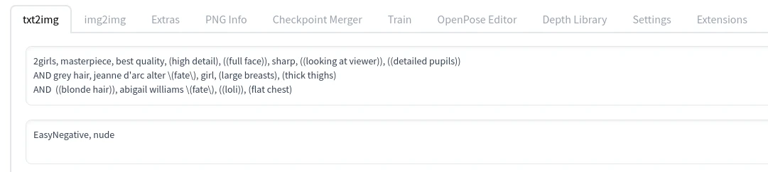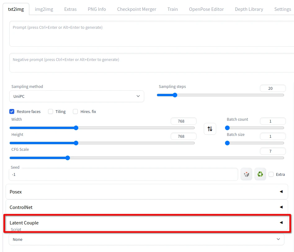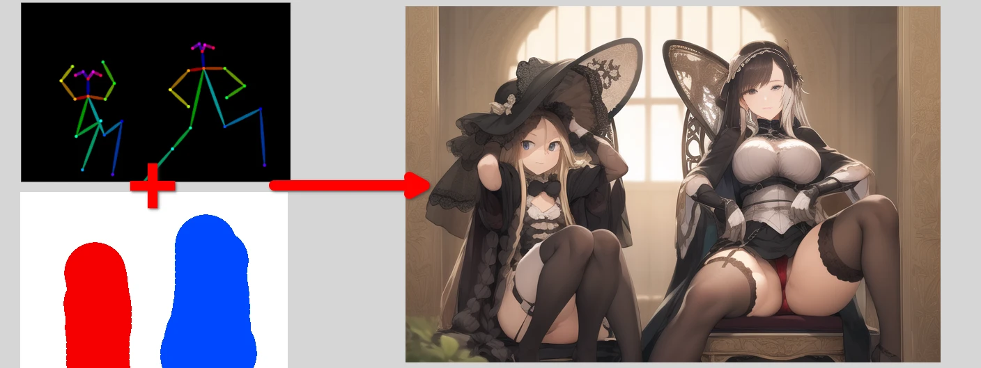 請先閱讀文生圖用法,並安裝ControlNet、Latent Couple、PoseX擴充功能。