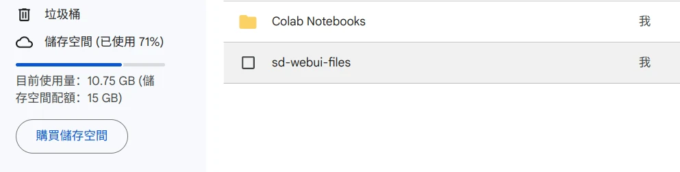 缺點就是很佔雲端空間,大概需要10GB左右容量。15GB免費容量只夠裝一個存檔點模型和少許LoRA,再勉強塞個ControlNet的擴充功能。因此我的程式碼只下載必要的檔案,擴充功能需要再另外裝。