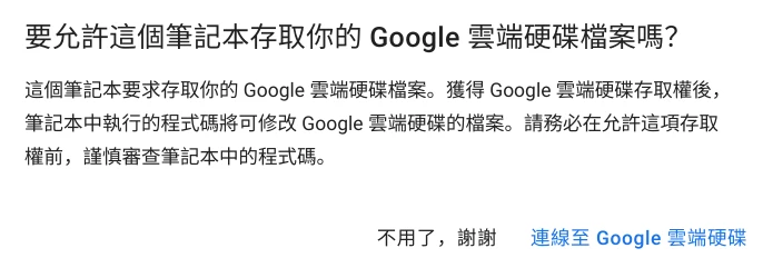 點選左上角執行儲存格,允許存取雲端硬碟。