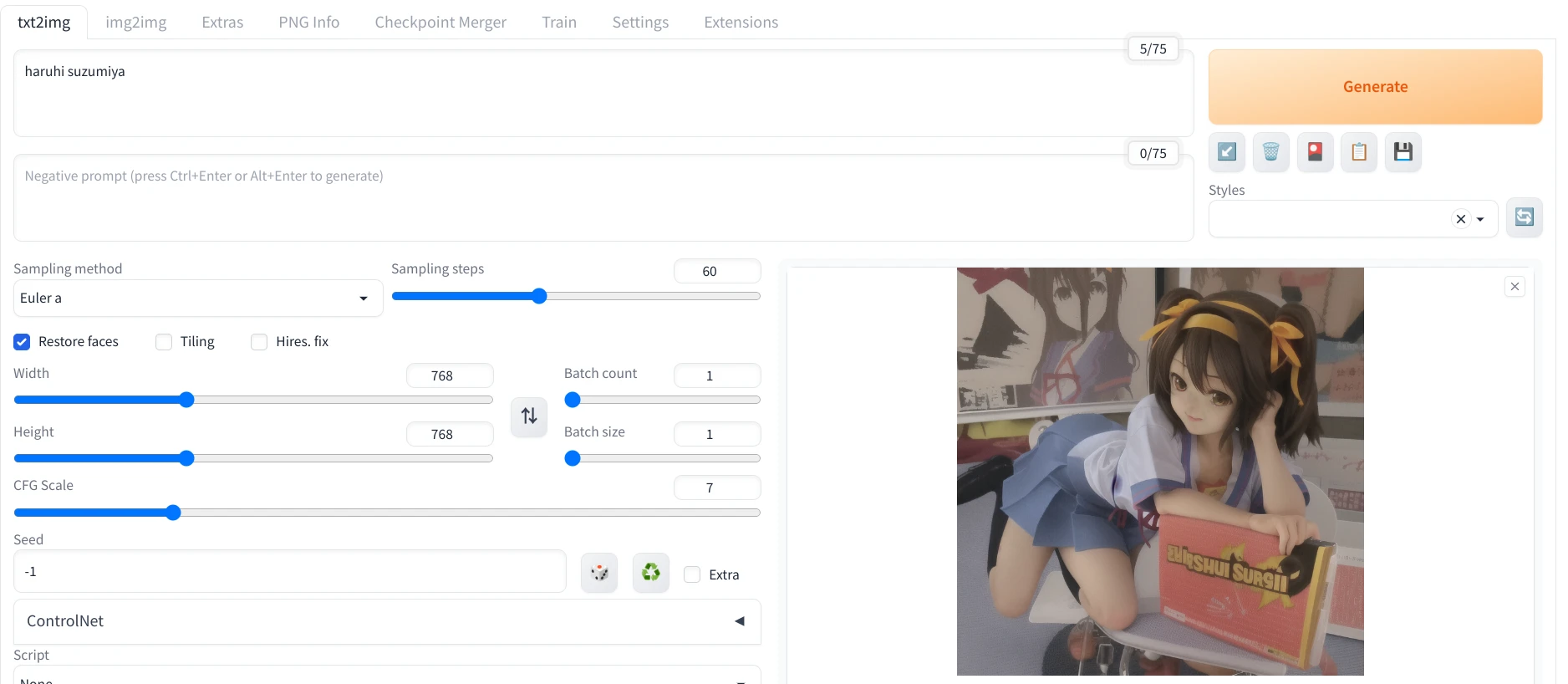 接下來的用法就跟裝在自己電腦的SD WebUI一樣了,亦可以從網頁界面安裝擴充功能。