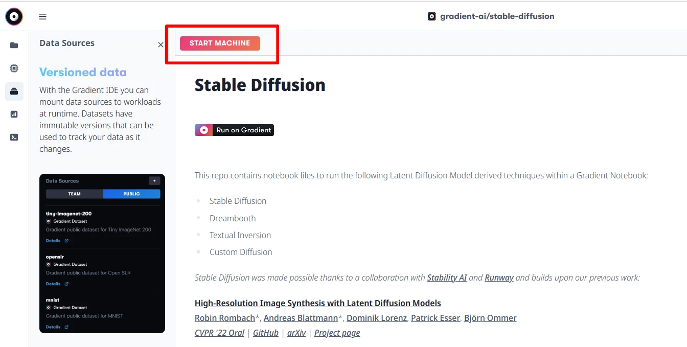 進入gradient-ai/stable-diffusion頁面,點選Start Machine