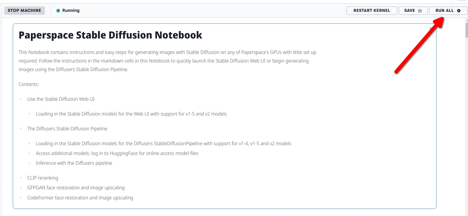 值得一提的是Paperspace官方有維護專門跑Stable Diffusion WebUI的筆記本,點一下就可以使用,並且速度很快。程式碼很清晰,可按照需求修改。