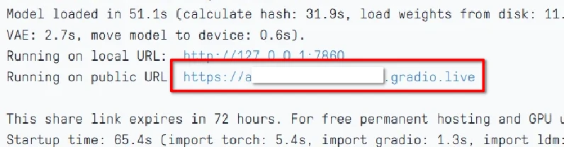 之後點選Use the Stable Diffusion Web UI這個儲存格終端機顯示的Gradio網址