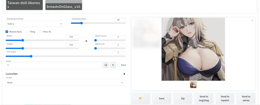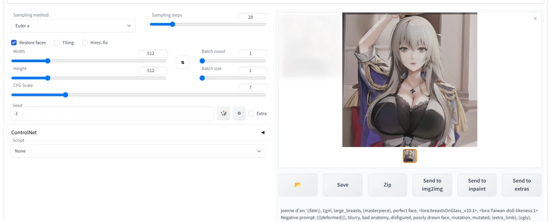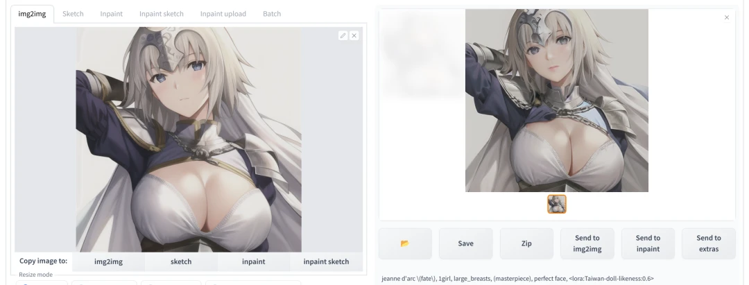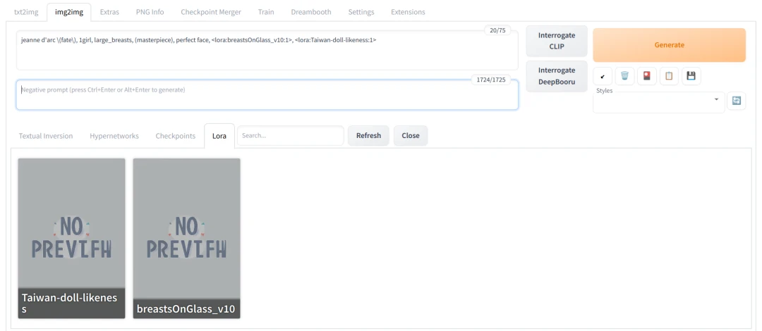 如果生出來的圖片太詭異,調整提示詞欄位每個LoRA後面的數字,控制權重。