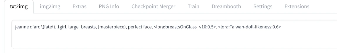 這樣就會出現選單。以LoRA為例,點選小模型的卡片便會將其加到提示詞欄位,提示詞欄位會出現