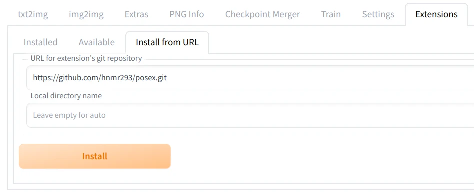 https://github.com/hnmr293/posex.git,按下Install。接著重啟WebUI。