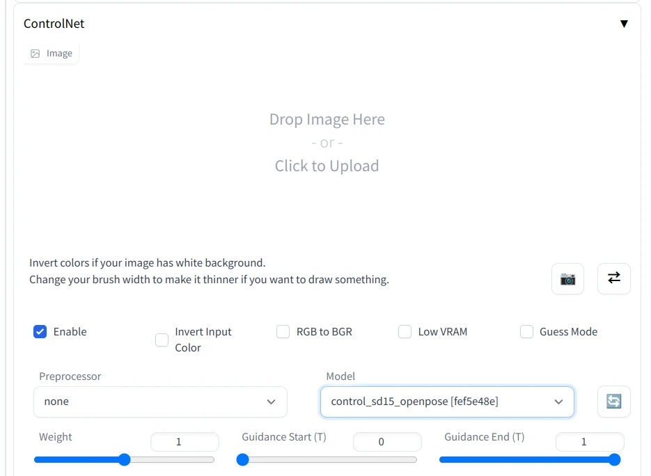 在下面的ControlNet,點選Enabled,preprocessor選取