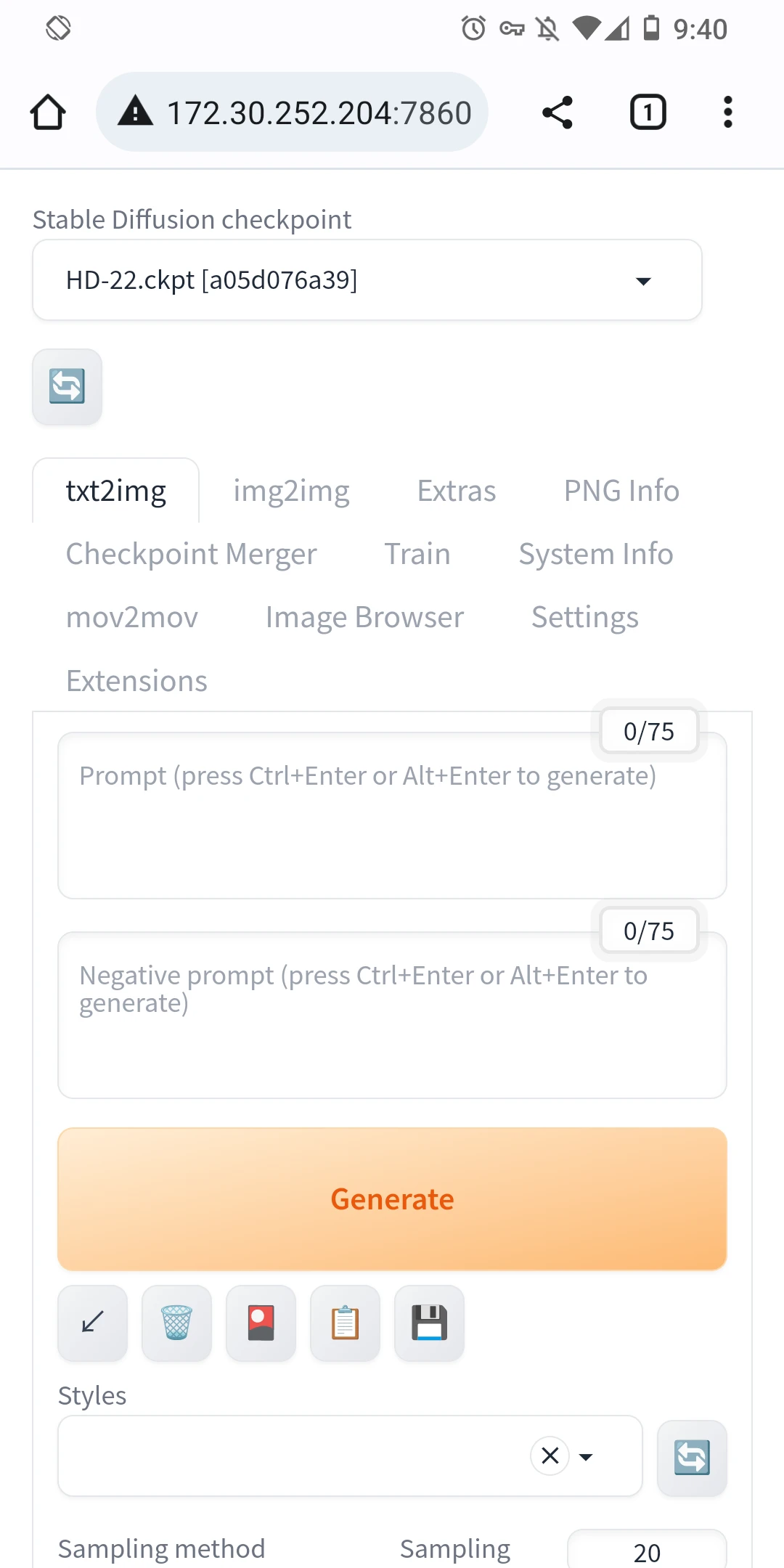 這樣Android/iOS的手機平板也能遠端存取Stable Diffusion WebUI的界面了。