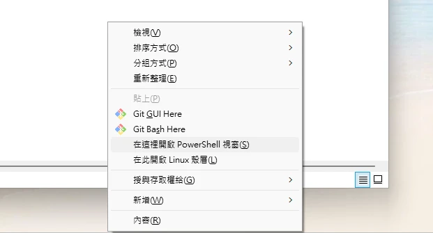 在這裡開啟Powershell或終端機視窗。如果你C槽空間不足的話,也可以切換到其他硬碟資料夾再開啟終端機。