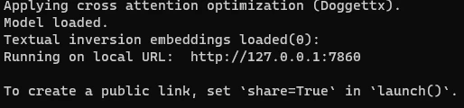 加上--share引數則會產生一組Gradio網址,讓你可以從外部網路或手機使用WebUI。網址72小時後過期。
