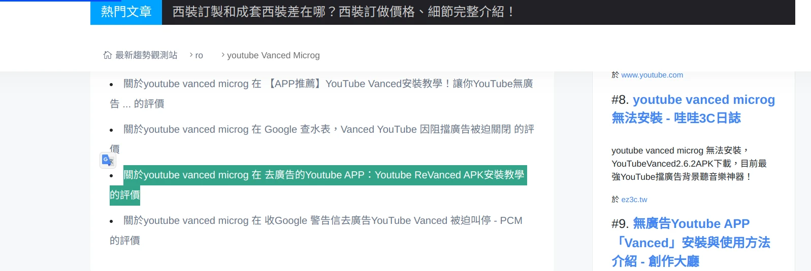 我想是因為剛好寫到很熱門主題的緣故,所以妖魔鬼怪都來了,很多文章都「榮幸」的被常見的中文資訊聚合站收錄了呢,例如這個「XX網紅評價」、「XX情報」的農場。這也代表這方面主題真的很熱門才會被收錄。