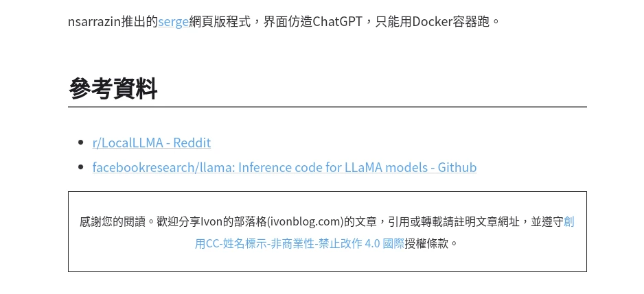 之所以選擇此授權條款,是因為原本Hugo MemE主題模板預設的「姓名標示-相同方式分享4.0」我覺得還不夠保護權利,便參考中科院 研之有物的作法,選取了「姓名標示-非商業性-禁止改作」條款。禁止改作不代表不能引用。