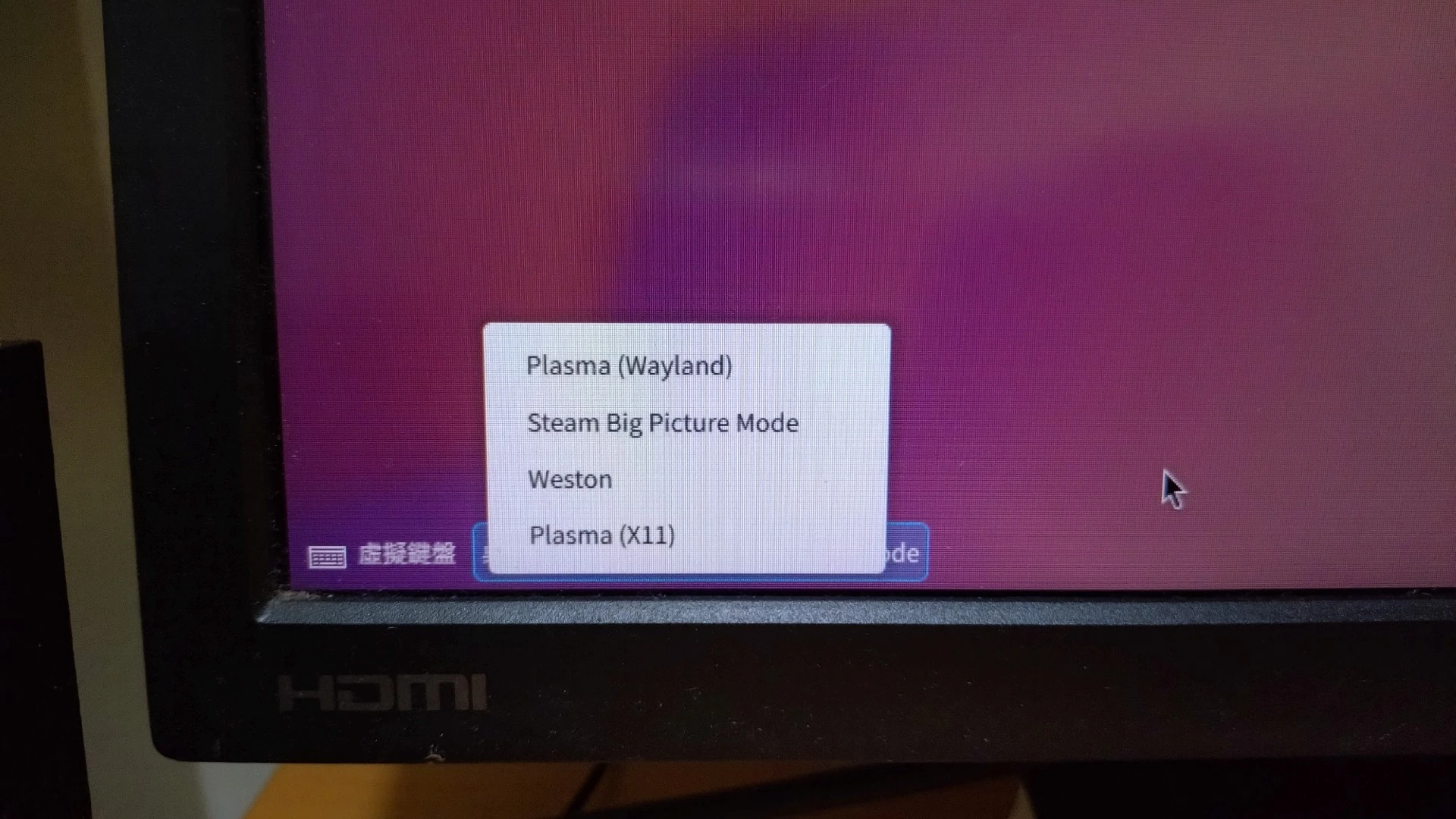 然後重開機,就會在Linux的登入界面看到Steam的選項,進入後就只會啟動Steam。於Big Picure Mode所有遊戲會自動用gamescope啟動,不需要在啟動選項加上gamescope指令。